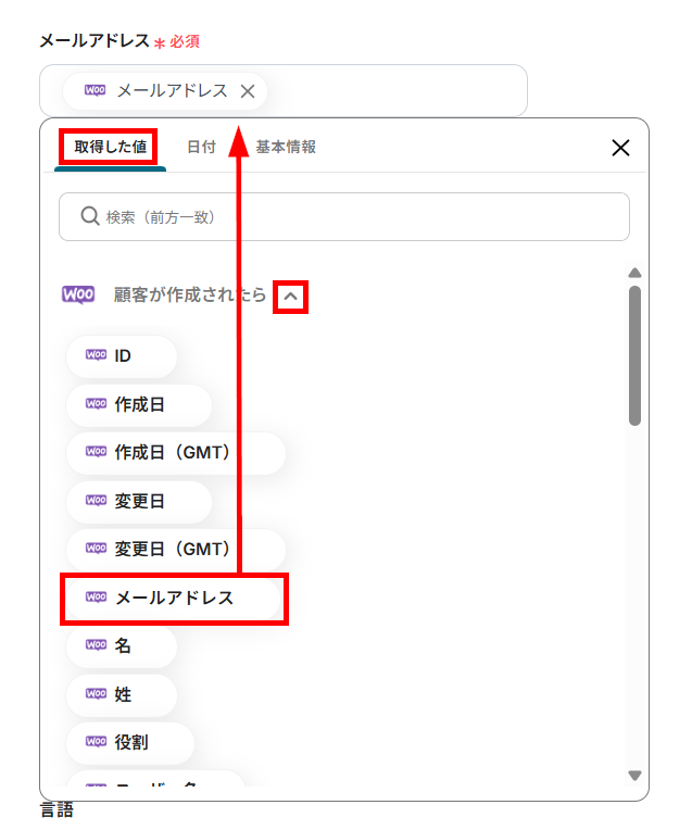 続いて、WooCommerceの顧客情報を取得する設定を行います。
