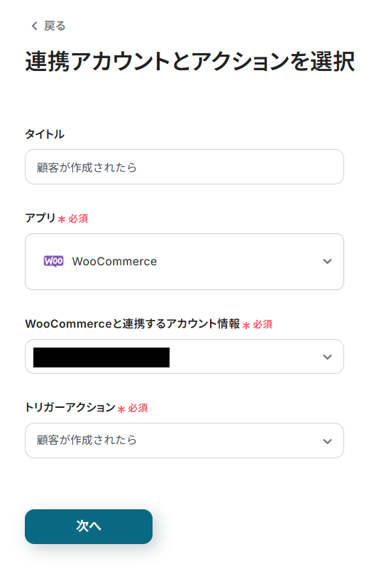 - 次に、トリガーでWooCommerceを選択し、「顧客が作成されたら」というアクションを設定します。