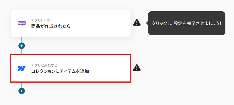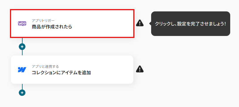 今回は「WooCommerceで商品が作成されたら、Webflowにアイテムを追加する」フローを作成していきます。