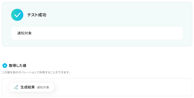 このデータは、後続のオペレーション設定時に利用でき、フロー実行のたびに最新のデータに更新される動的な値となります。
