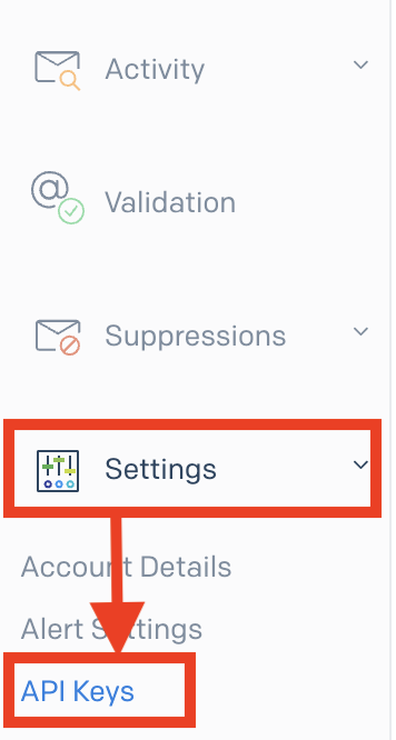ログインできたら、サイドメニューの「Settings」から「API Keys」を選択します。