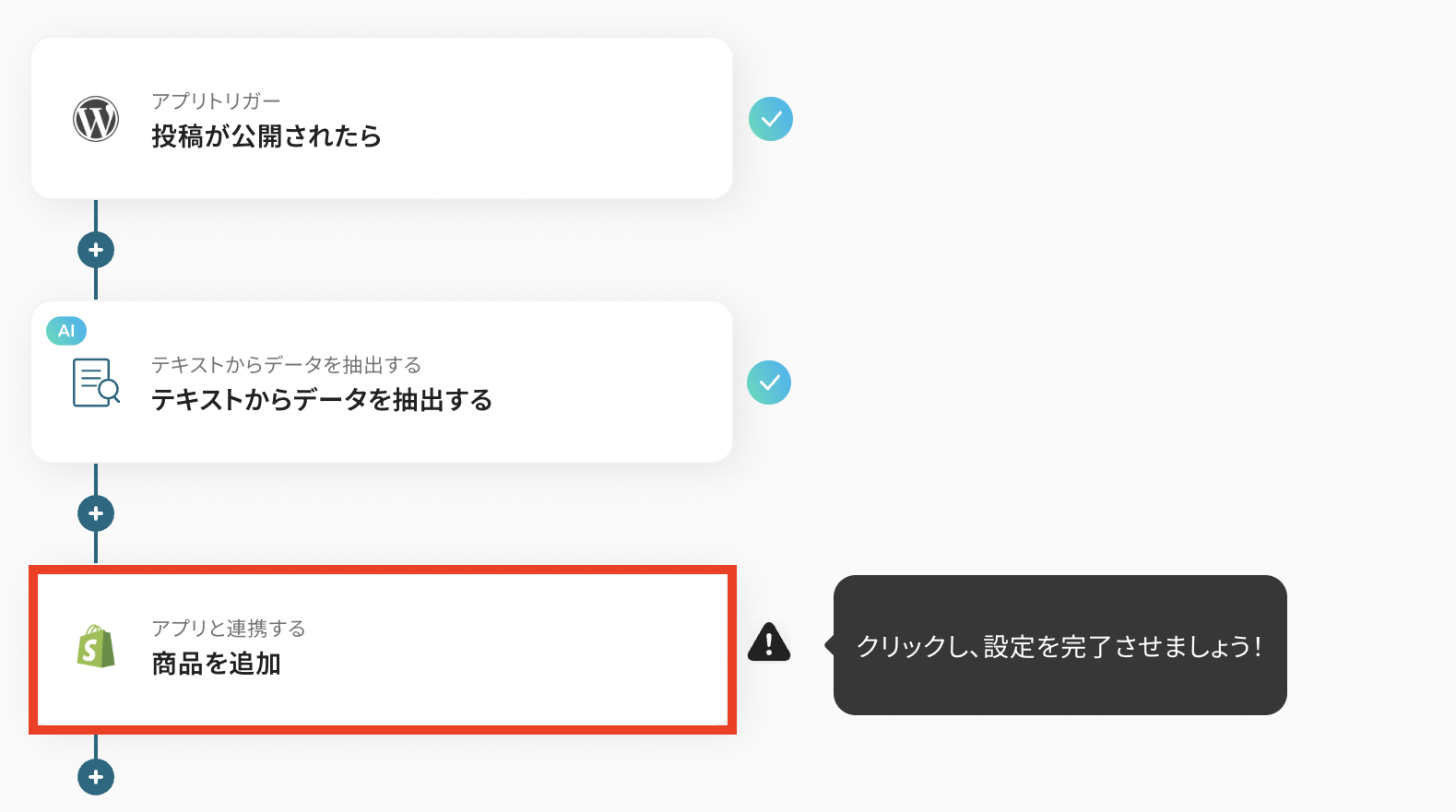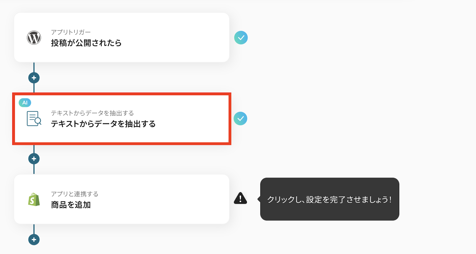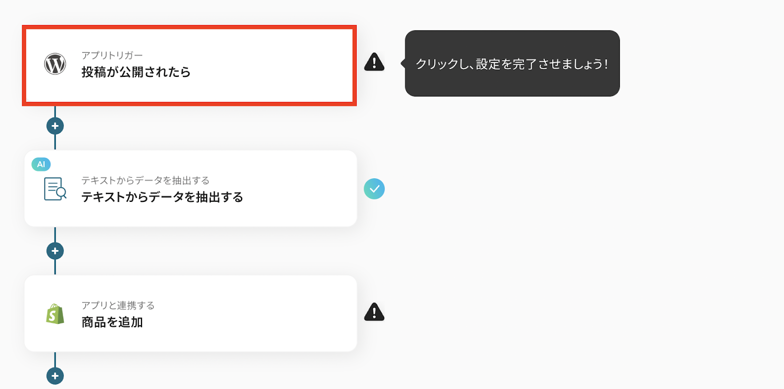 - WordPressのトリガー設定およびAI機能とShopifyのアクション設定