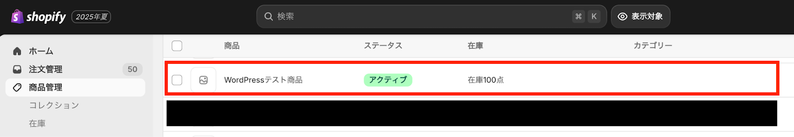 テストに成功すると、Shopifyに商品が登録されるので確認しましょう。
