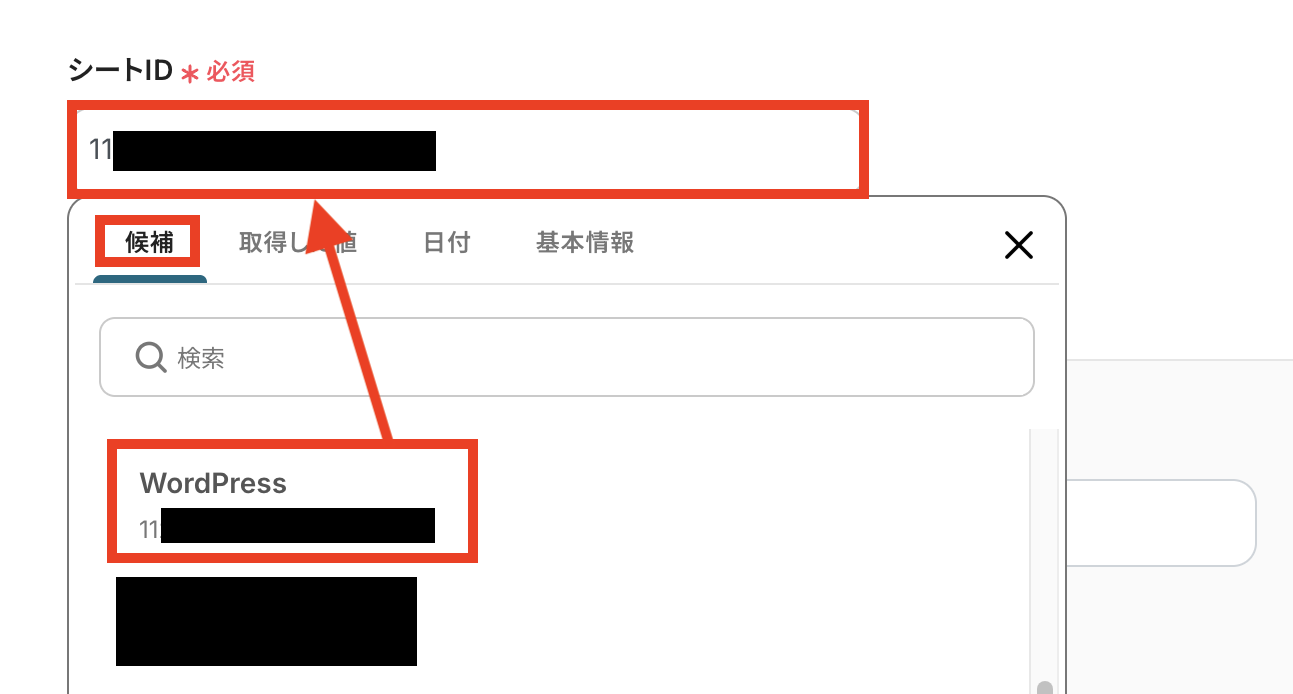 入力欄をクリックすると、シート一覧が表示されるので連携したいシートをその中から選んでください。