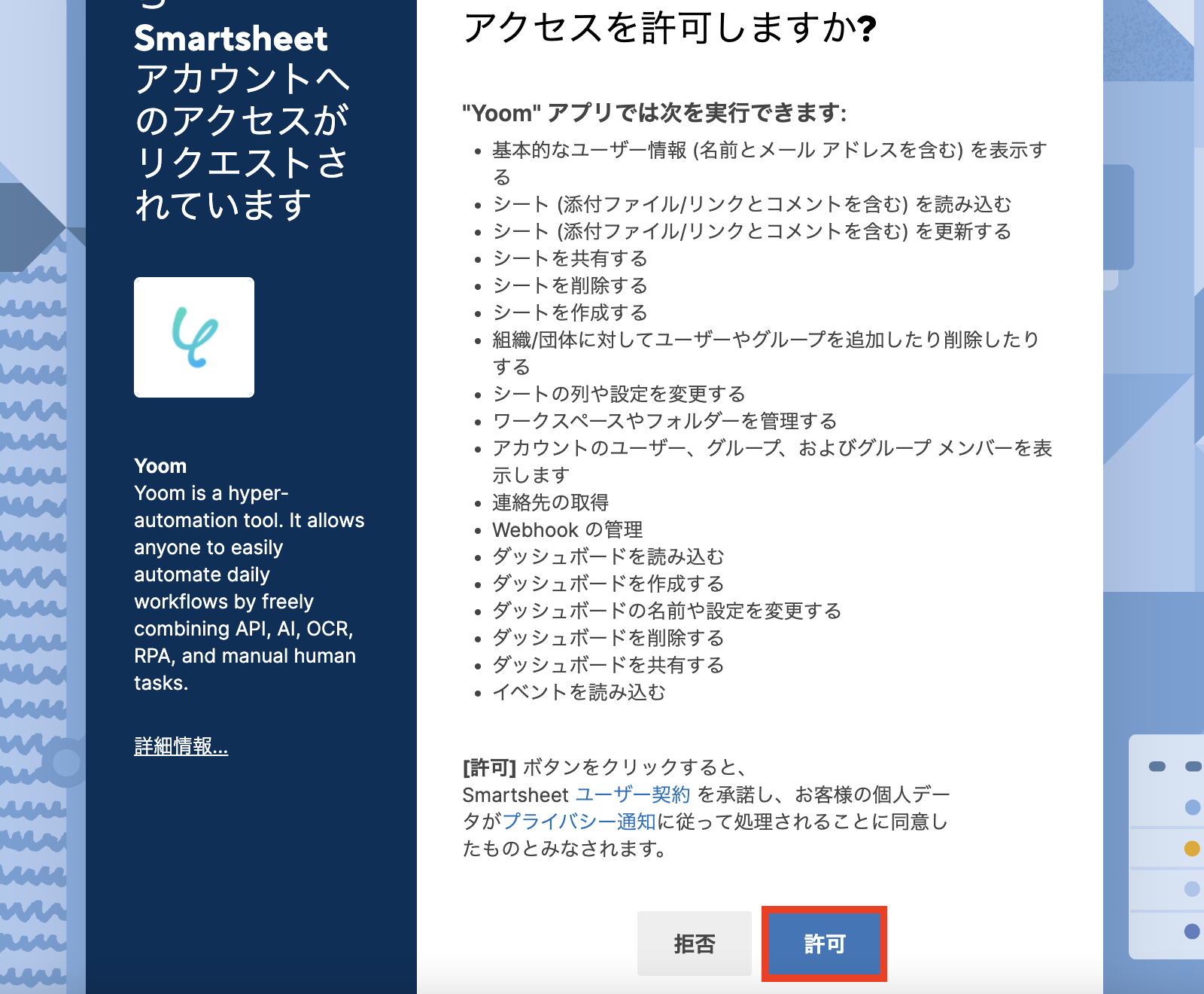 内容を確認後、問題なければ「許可」をクリックして連携完了です!