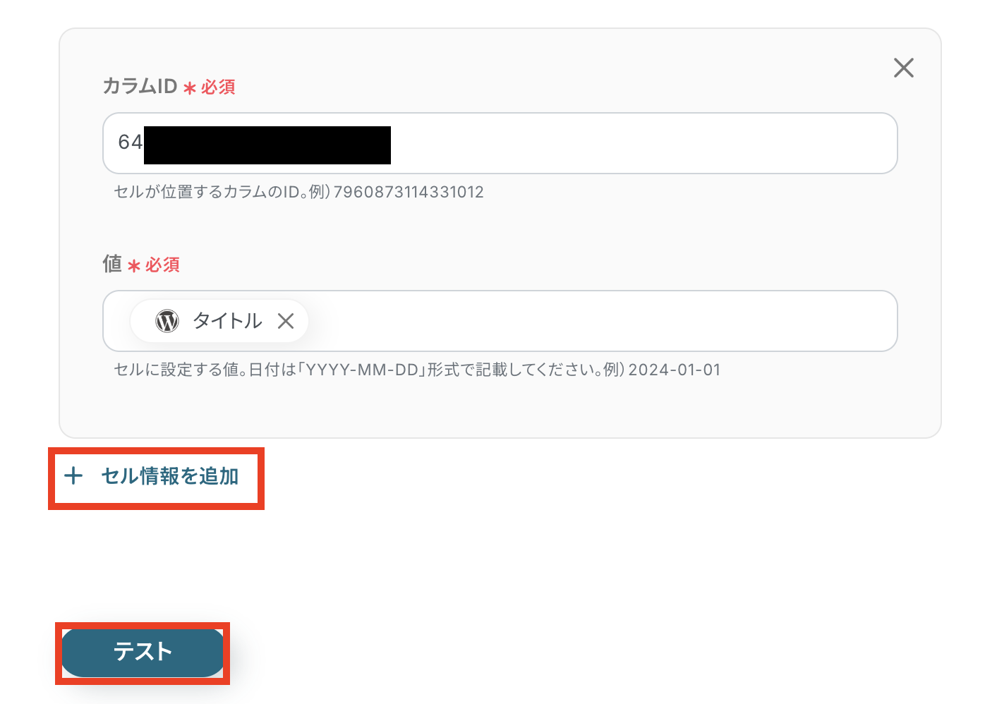 テストに成功すると「取得した値」の欄に投稿に関するデータがアウトプットされるので、確認できたら「保存する」をクリックしましょう!
