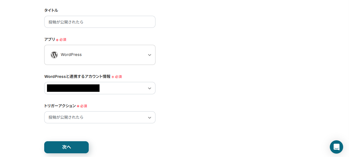 ステップ3:WordPressに投稿が公開されたら起動するトリガーの設定