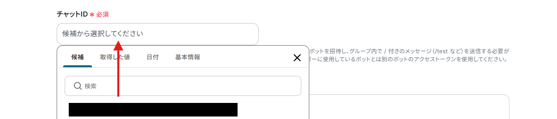 メッセージの自動送信に使用したいTelegramのチャットIDを候補から選択しましょう。