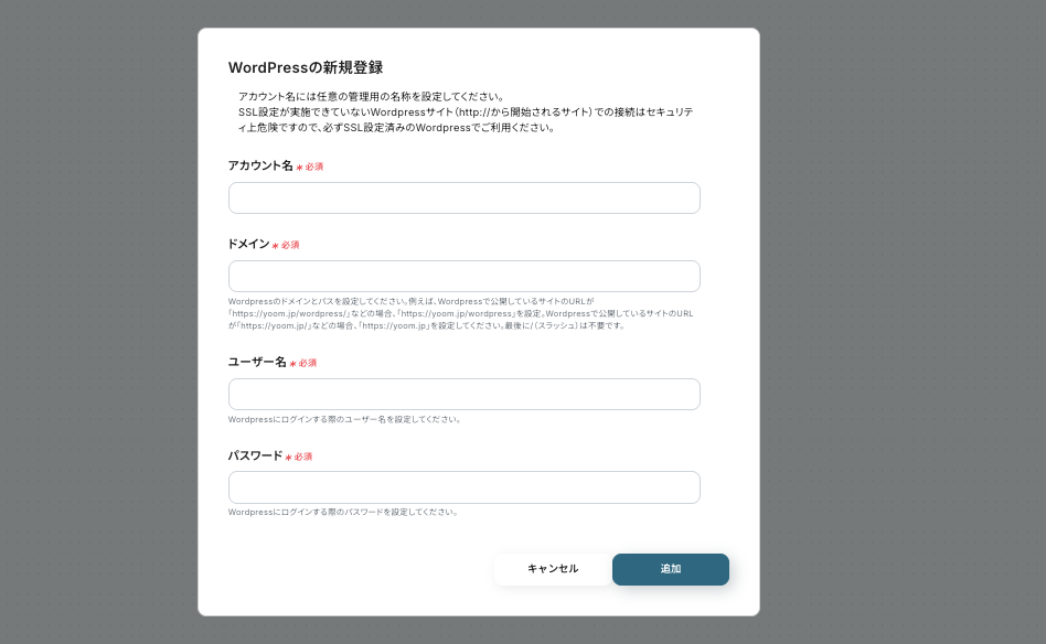 今回はYoomを使用して、ノーコードでWordPressとSlackの連携を進めていきます。まだアカウントをお持ちでない場合は、こちらの登録フォームからアカウントを発行しておきましょう。