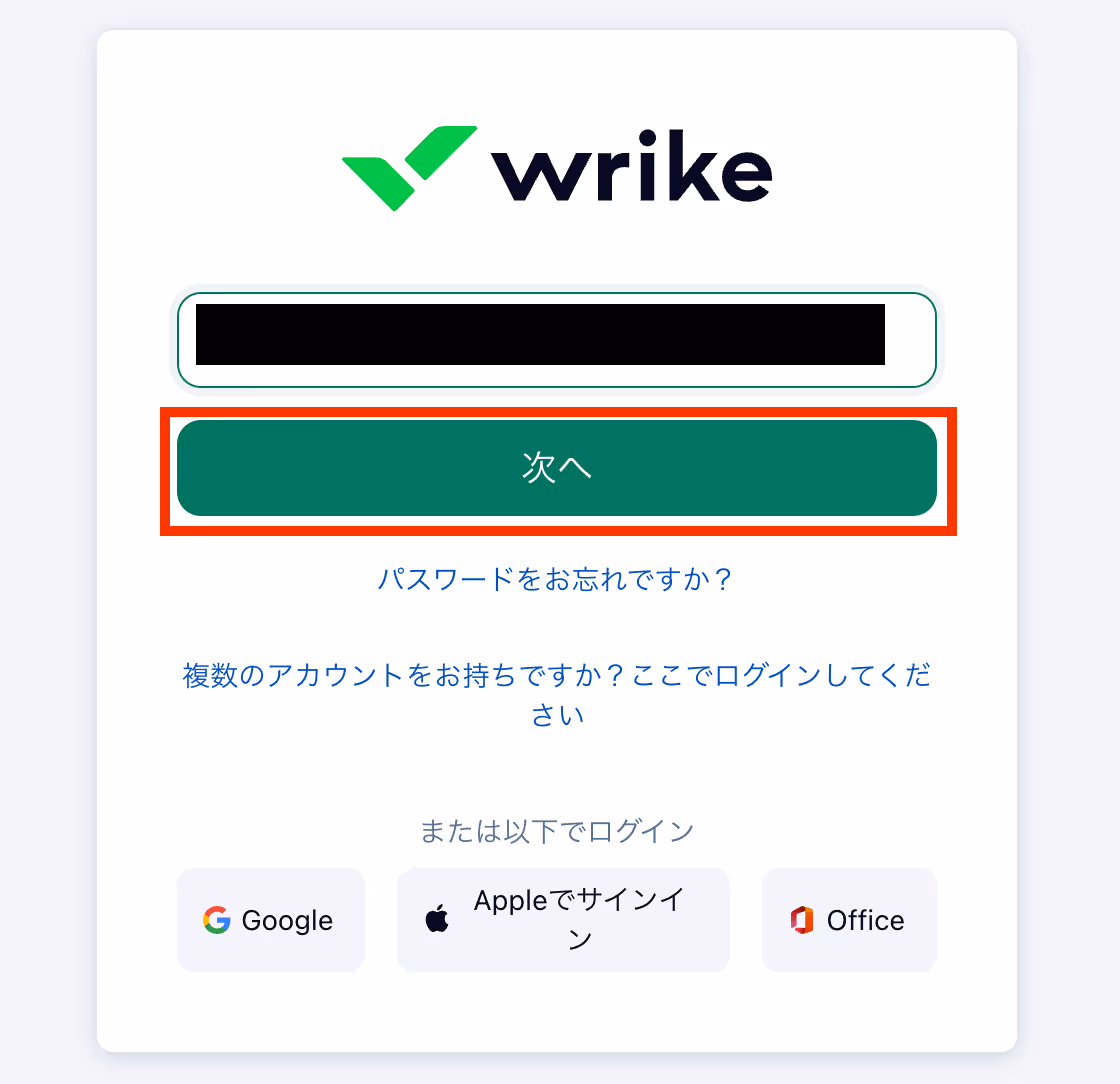 Wrikeを検索するとログインページが表示されるので「メールアドレス」か「会社ID」を入力します。