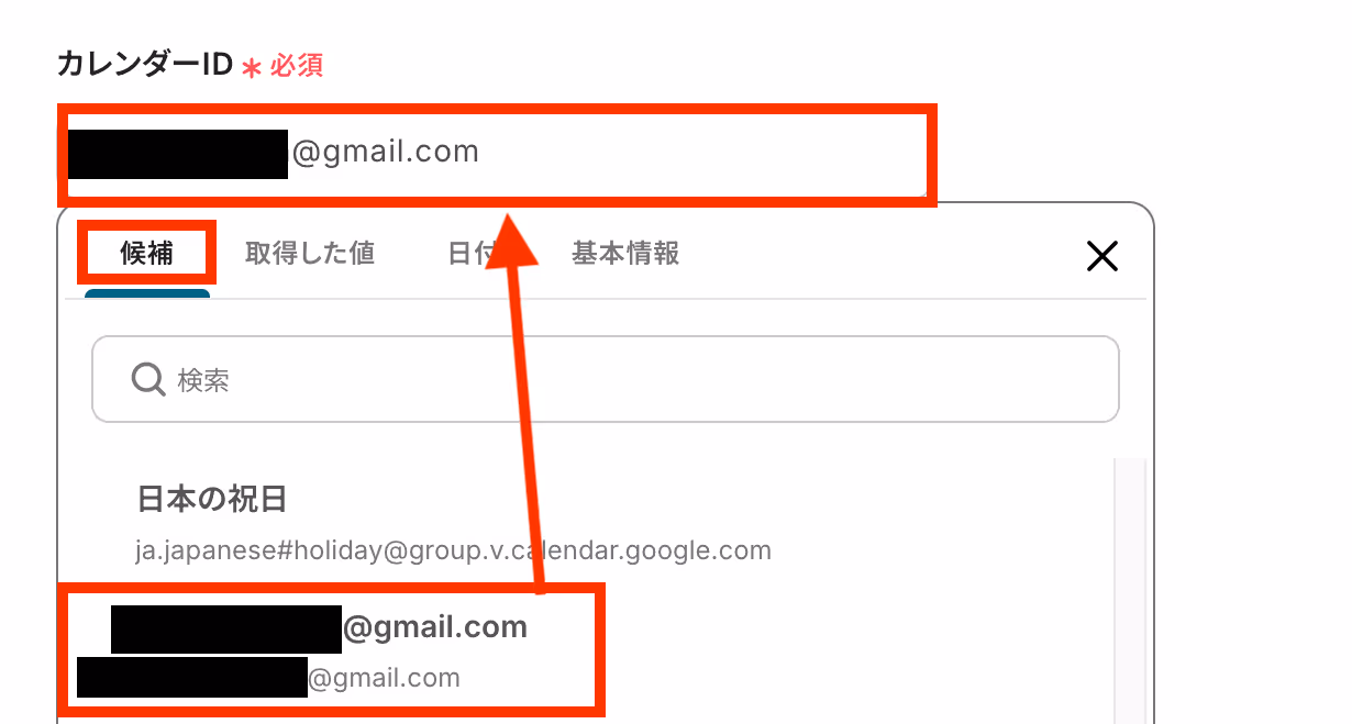「予定の開始日時」と「予定の終了日時」もステップ3で取得した値を活用しましょう!