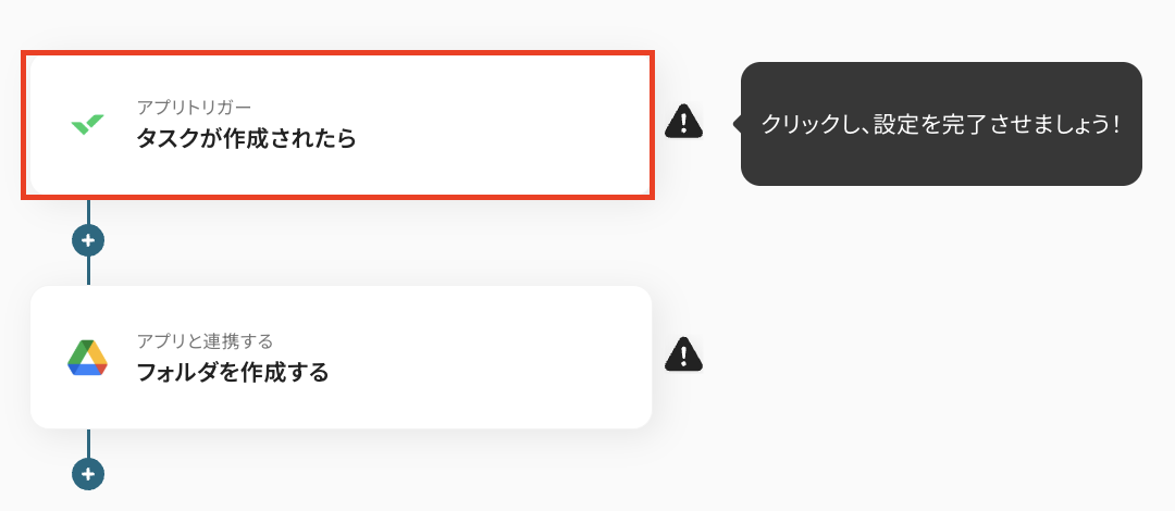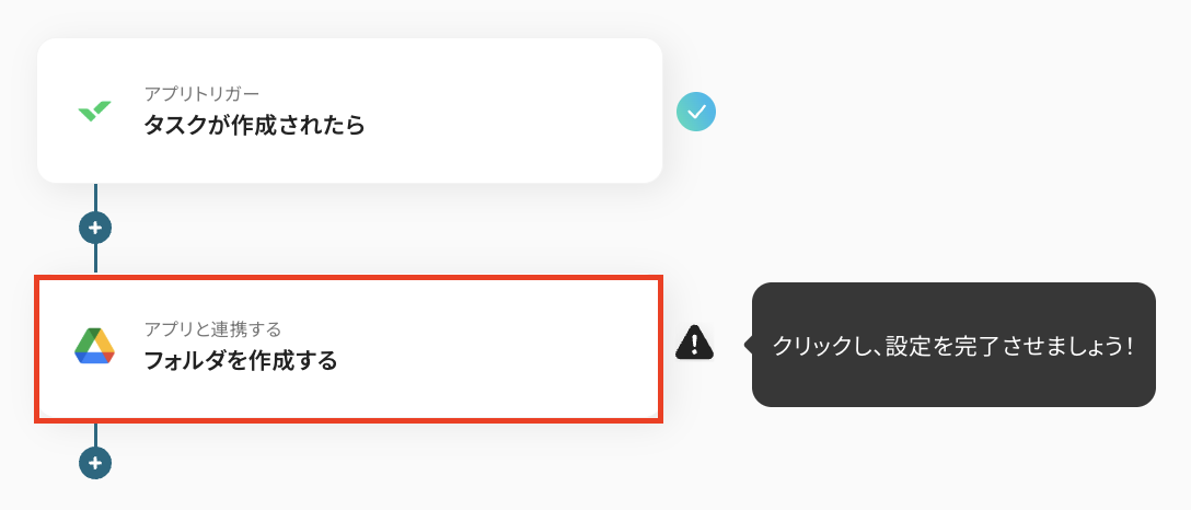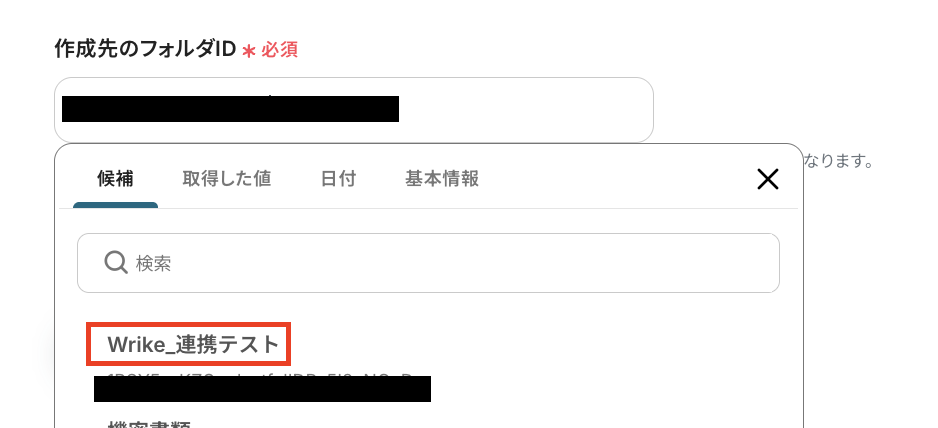 続いて、Wrikeに作成されたタスク情報を使って、Google Driveにフォルダを作成する設定を行います。