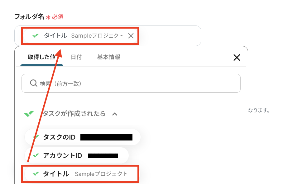 下図のようにアウトプットを使用することで、Wrikeのタスク情報を引用した名前でフォルダを作成できますよ!