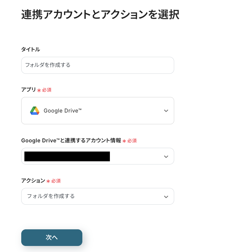 ステップ4:Google Driveのフォルダ作成設定
