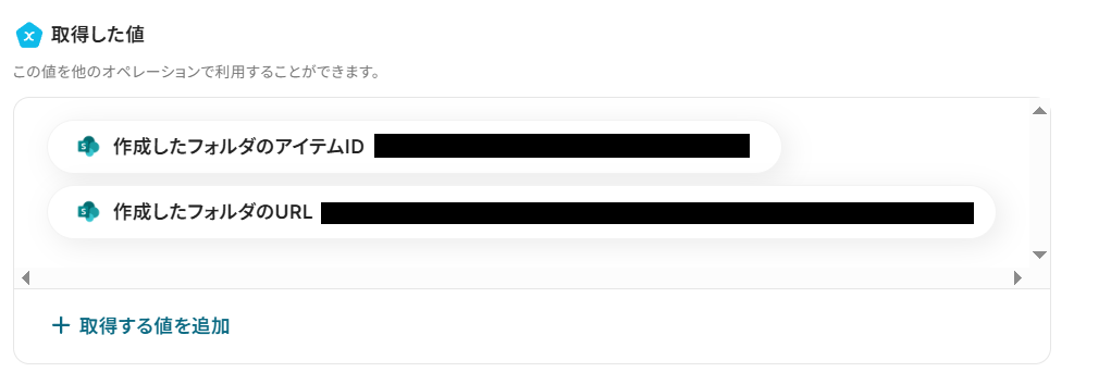 ここまで設定できたら「テスト」ボタンを押してみましょう。取得した値に、Microsoft SharePointで新たに作成されたフォルダの情報が反映されていれば成功です!