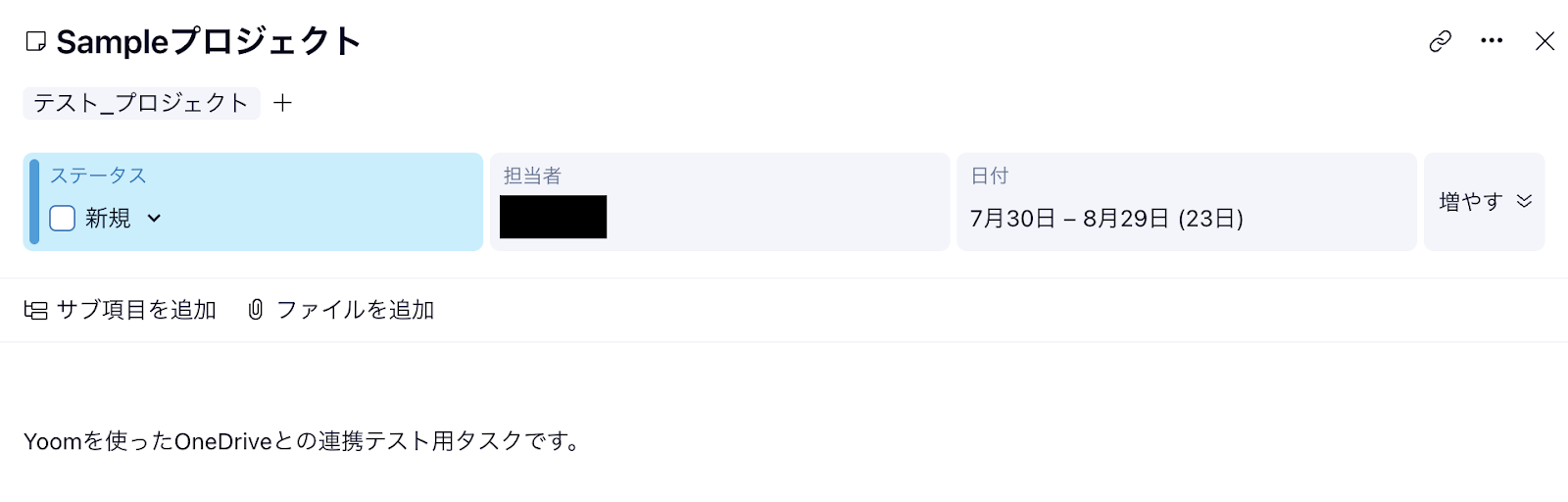 この時に作成するタスクは、「Sampleプロジェクト」など架空の情報でOKです!