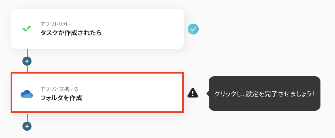 アクションは変更せず、「フォルダを作成」のままでOKです!