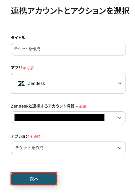 Zendeskと連携するアカウント情報に問題がなければ、「次へ」をクリックします。
