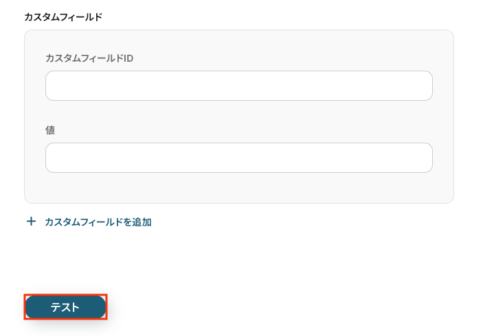 入力が完了したら、設定した内容をもとにZendeskにチケットが作成されるか確認するため「テスト」をクリックします。