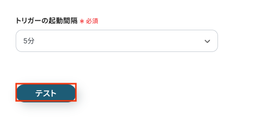 入力が完了したら、設定内容とトリガーの動作を確認するため「テスト」をクリックします。
