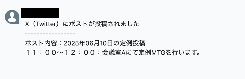 X(Twitter)に投稿された内容が反映された状態で、メッセージが届いていますね!