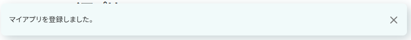 以下の画像のようなマイアプリを登録しましたと表示されれば登録完了です。