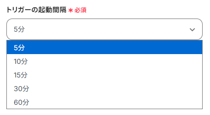 ※トリガーの起動タイミングは、5分、10分、15分、30分、60分のいずれかを選択できます。