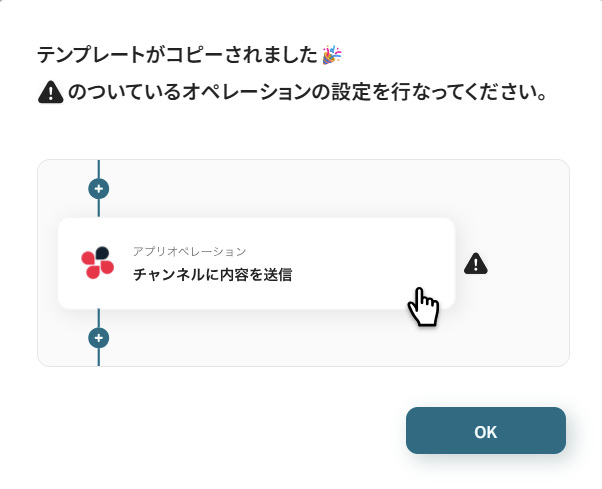 以下のような画像が出てくるのでOKをクリックすればコピー完了です。