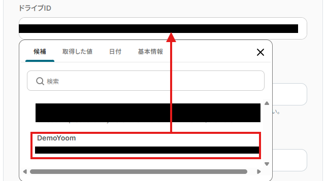 ドライブID:OneDiveのドライブを選択します。