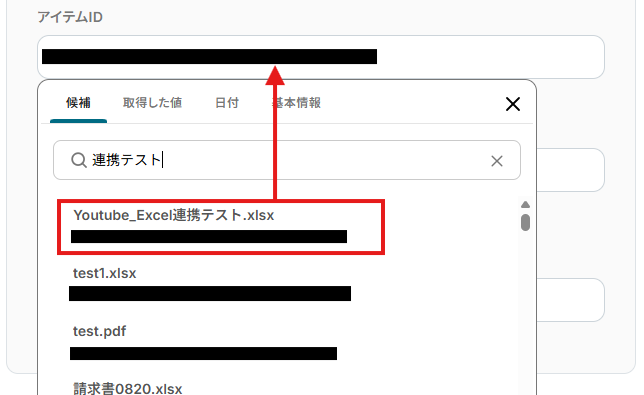 アイテムID:候補から使用するファイルを選択します。