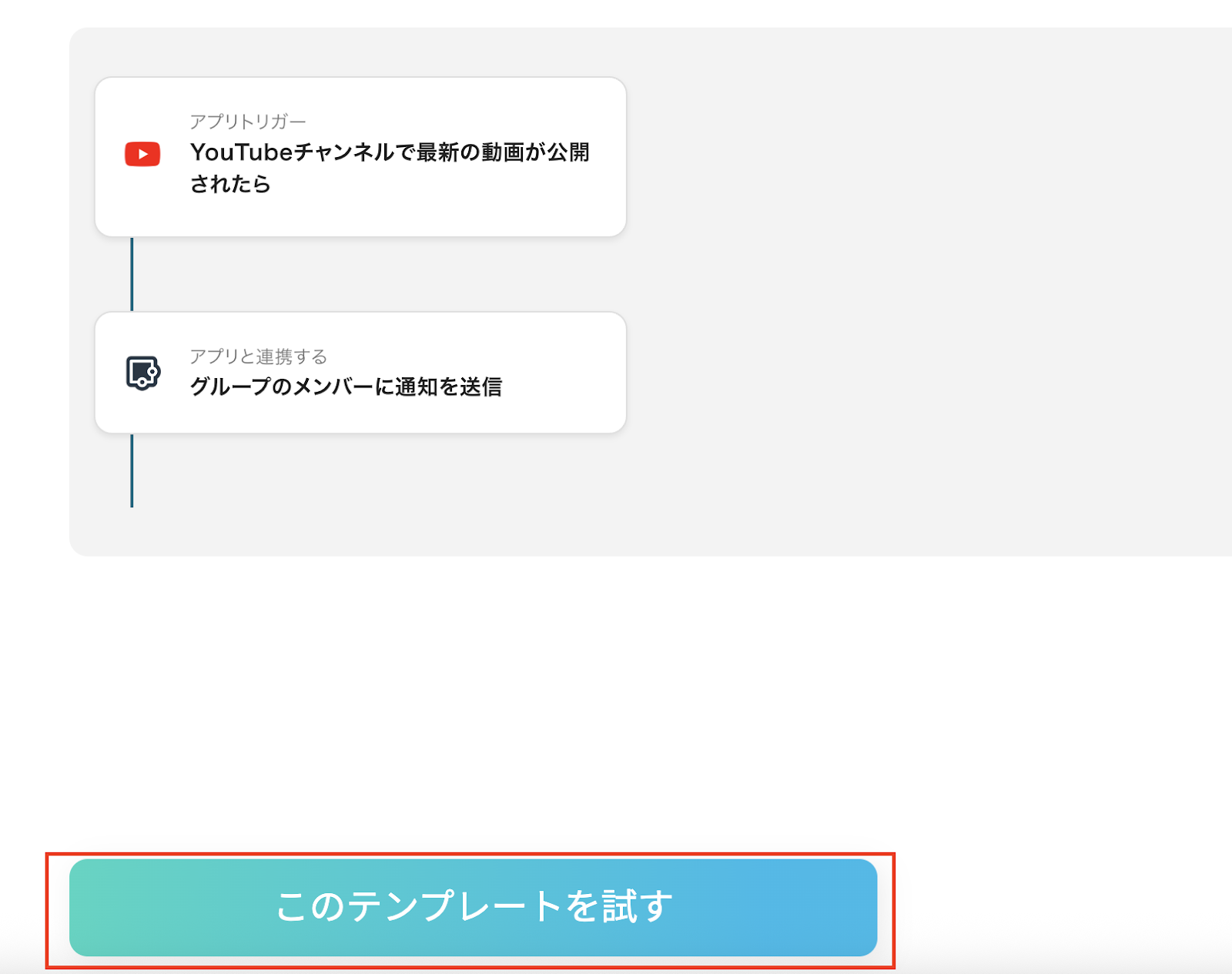 先ほどコピーしたテンプレートの「YouTubeチャンネルで最新の動画が公開されたら」をクリックしてください。