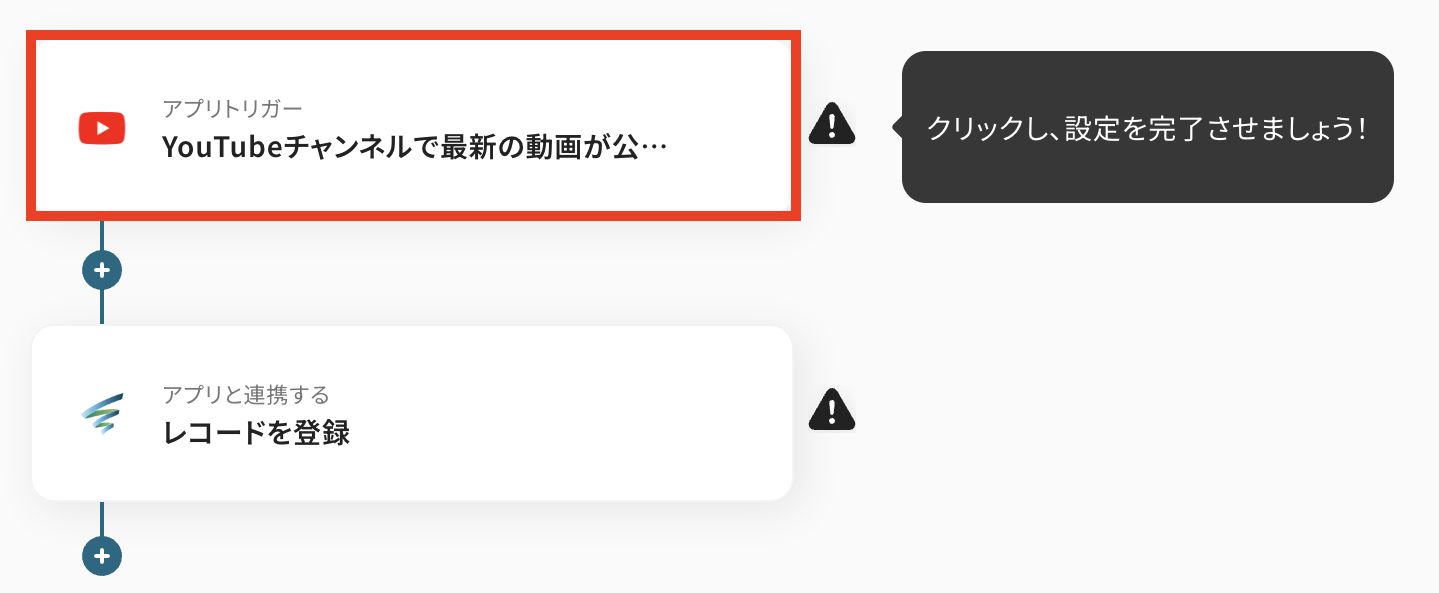 今回は「YouTubeチャンネルで最新の動画が公開されたら、SPIRALにレコードを登録する」フローを作成していきます。