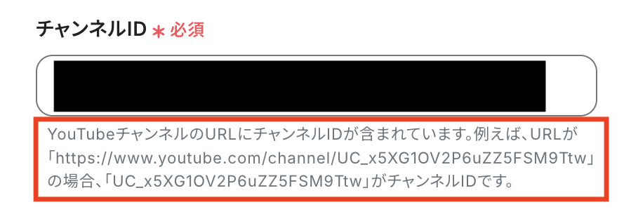 「チャンネルID」は赤枠部分の説明部分を確認しながら入力してください。