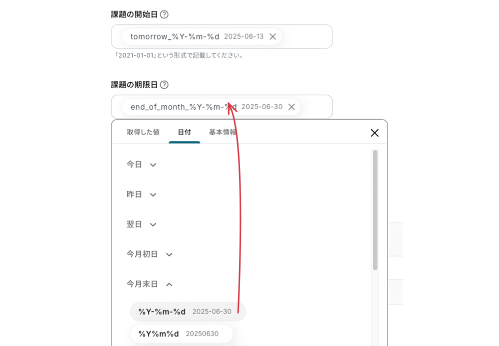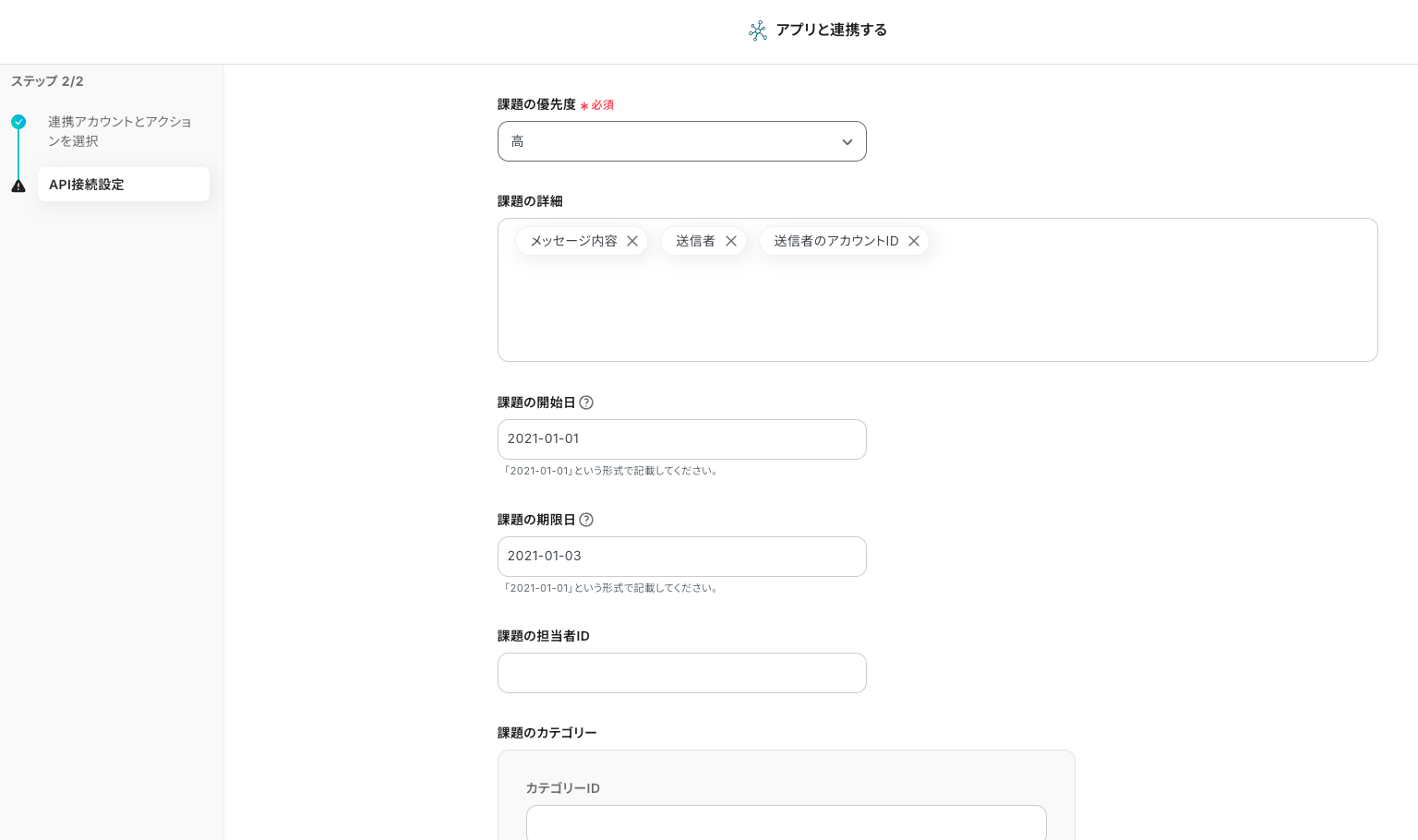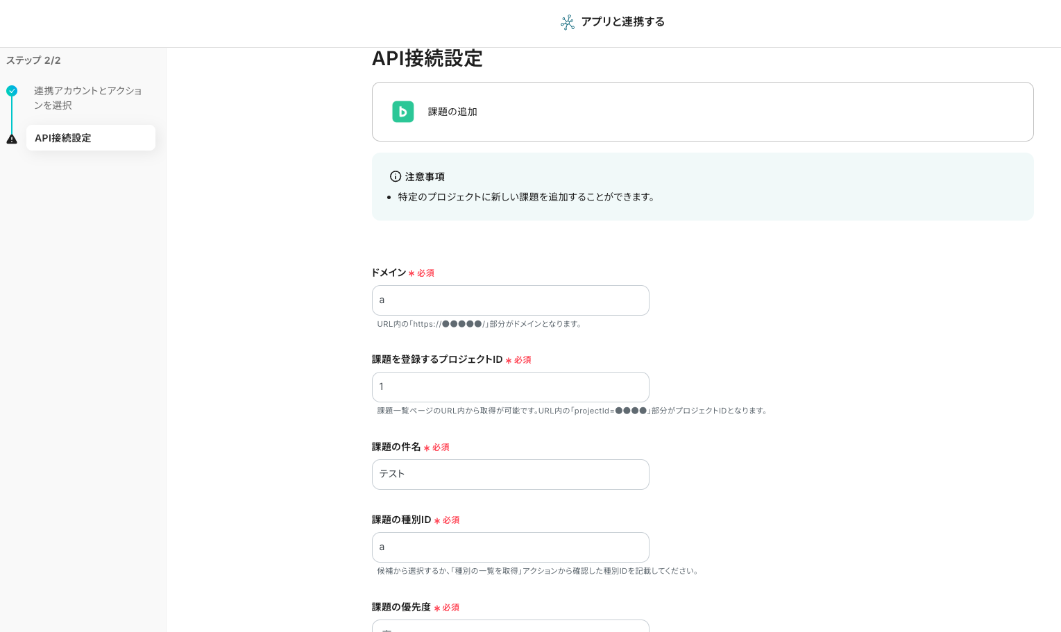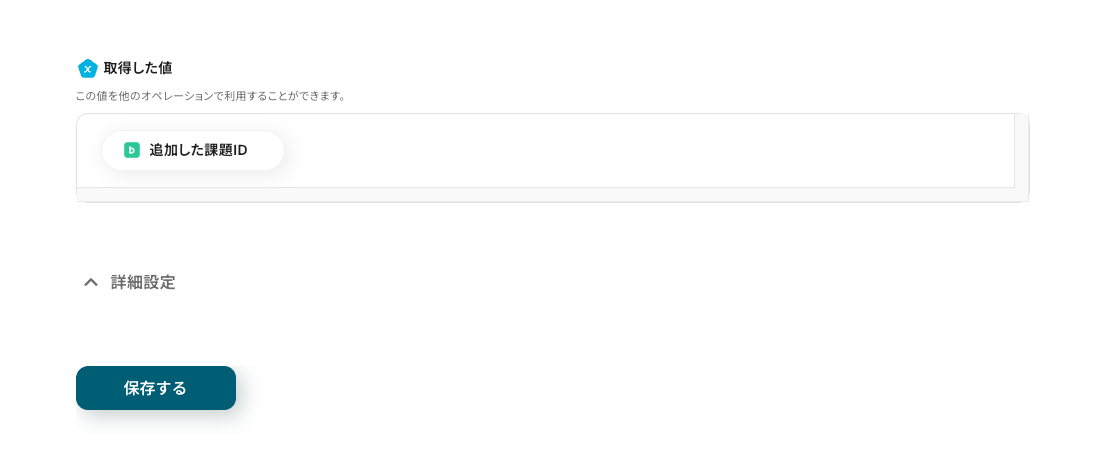 成功すると、追加した課題の情報から抽出できる値が表示されます。