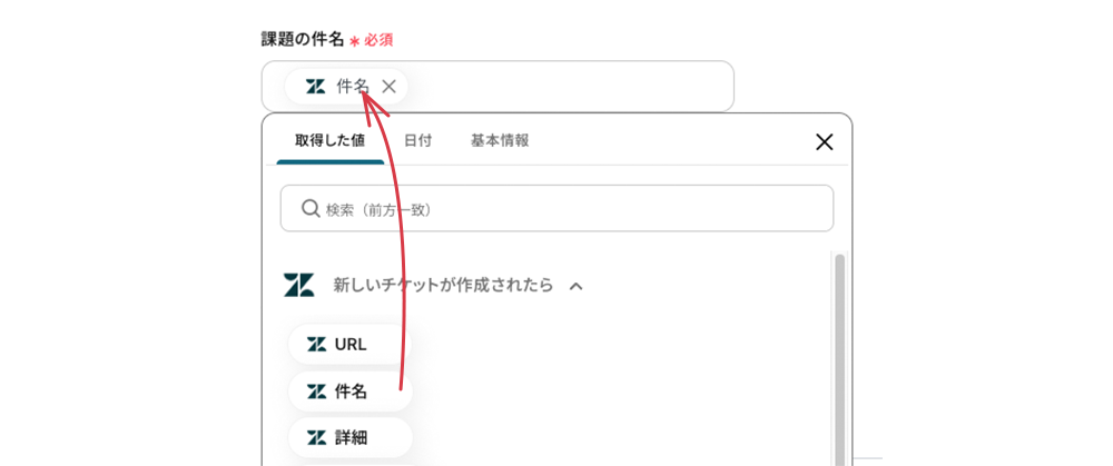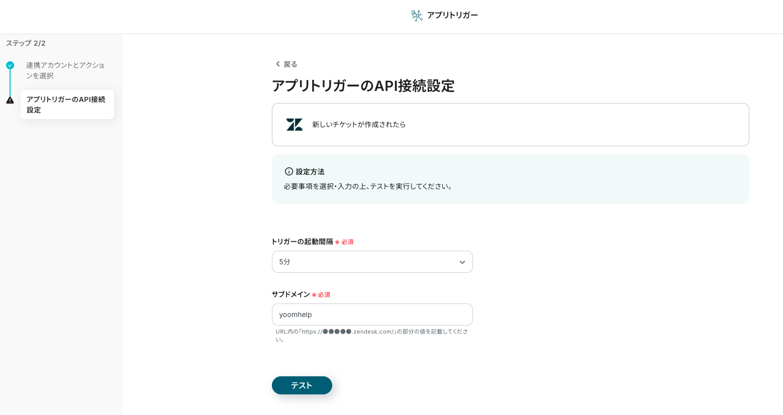 検索結果からアプリ名をクリックします。Zendeskで取得した値を入力する画面が表示されます。
