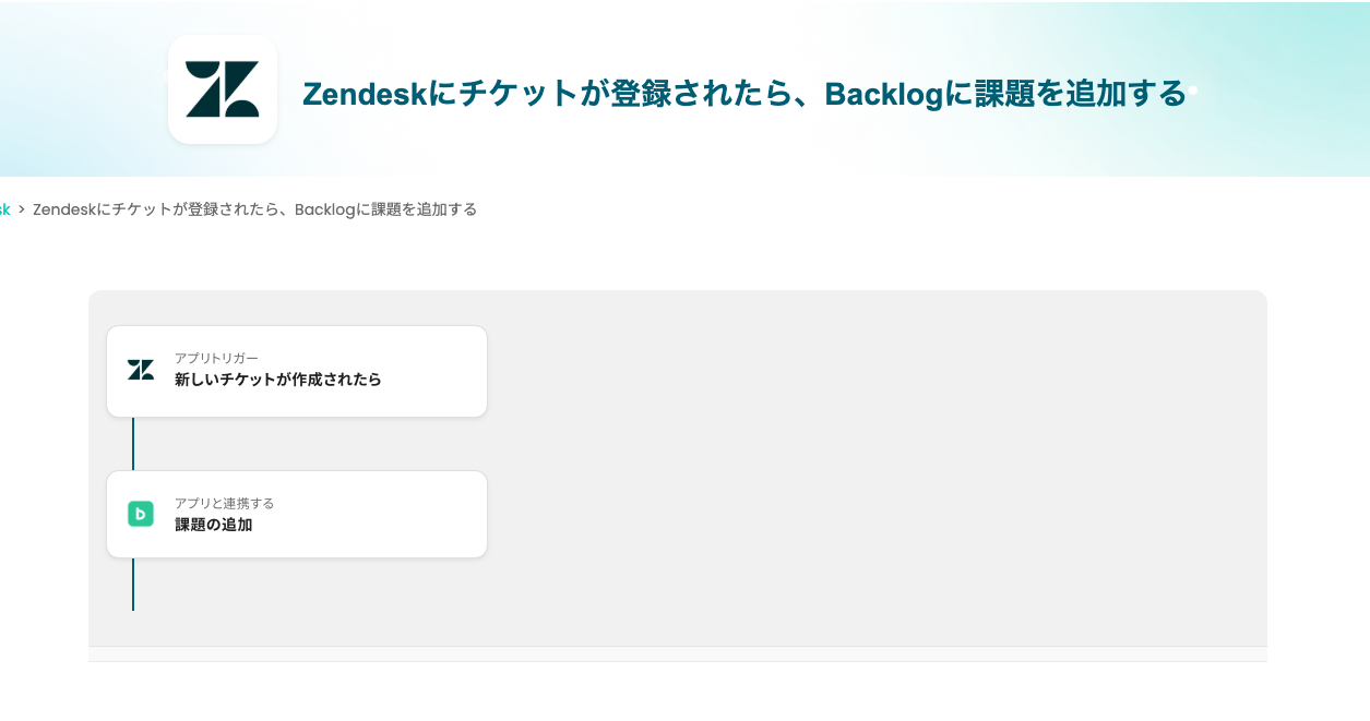 今回は「Zendeskにチケットが登録されたら、Backlogに課題を追加する」フローを作成していきます!