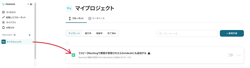 コピーしたテンプレートは、マイプロジェクトに追加されます。マイプロジェクトは左のメニューバーからアクセス可能です。