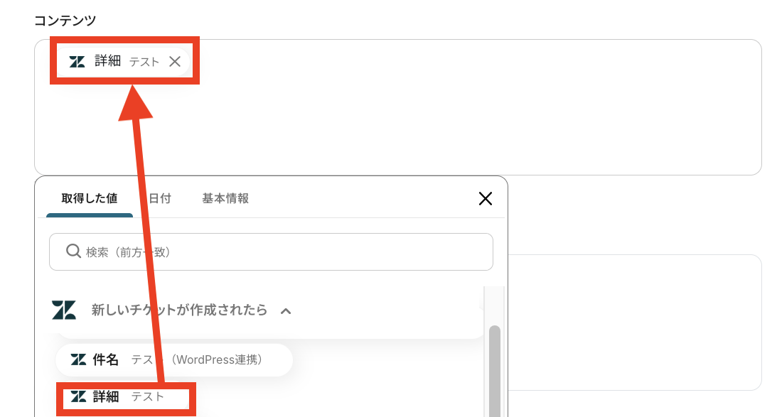 同じ要領で「コンテンツ」も取得した値を埋め込みます。