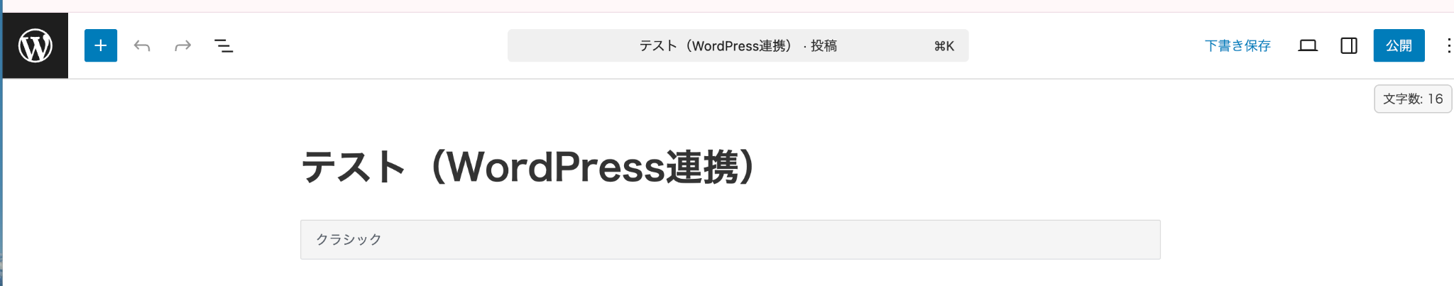 テストに成功したら、実際にWordPressの投稿欄を確認して投稿が下書き保存されているか確認をしてください。
