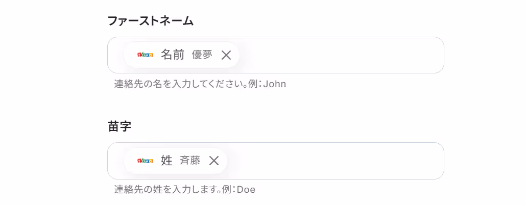 今回はテストの際にわかりやすいよう、ファーストネームと苗字を設定してみました。
