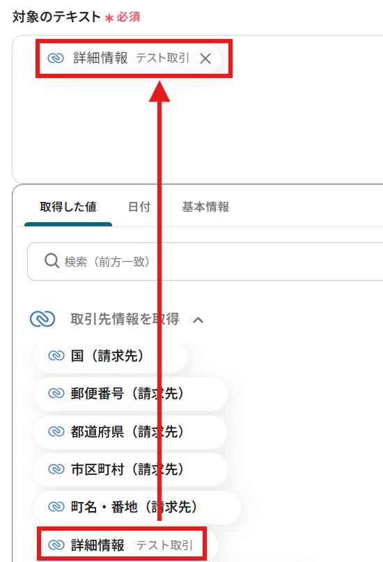 入力欄をクリックすると選択肢が表示されますので、先ほど取得した値の中から選びましょう。