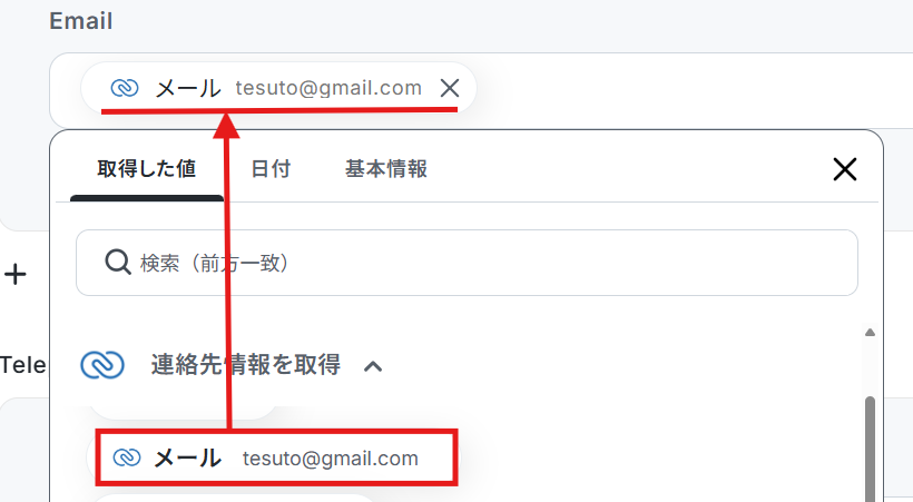 はい、可能です。 ステップ5を設定する際に、Telephone Listの項目を設定しましょう。 取得した値を活用することで、Zoho CRMの新規連絡先の値を連携することが可能です。