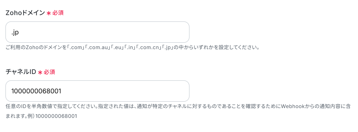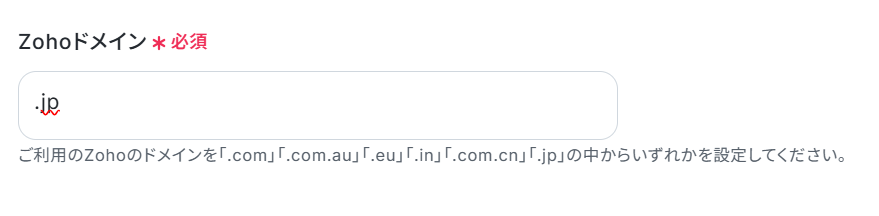 ステップ3での設定と同様に、Zoho CRMのドメインを入力します。