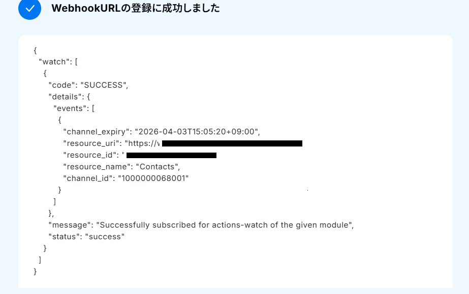 アクション一覧から「連絡先が更新されたら(Webhook)」を選択し、設定してください。