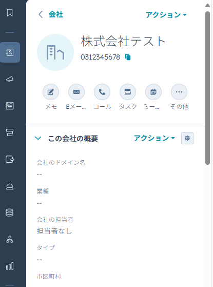 HubSpotの画面を開き、会社が自動作成されているのを確認してください。
