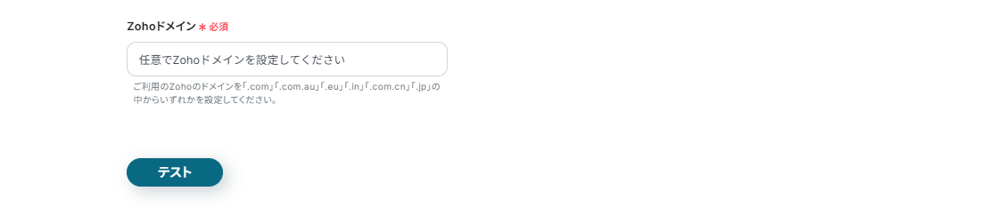 Zohoドメインは、枠外の注釈を参考に設定してください。