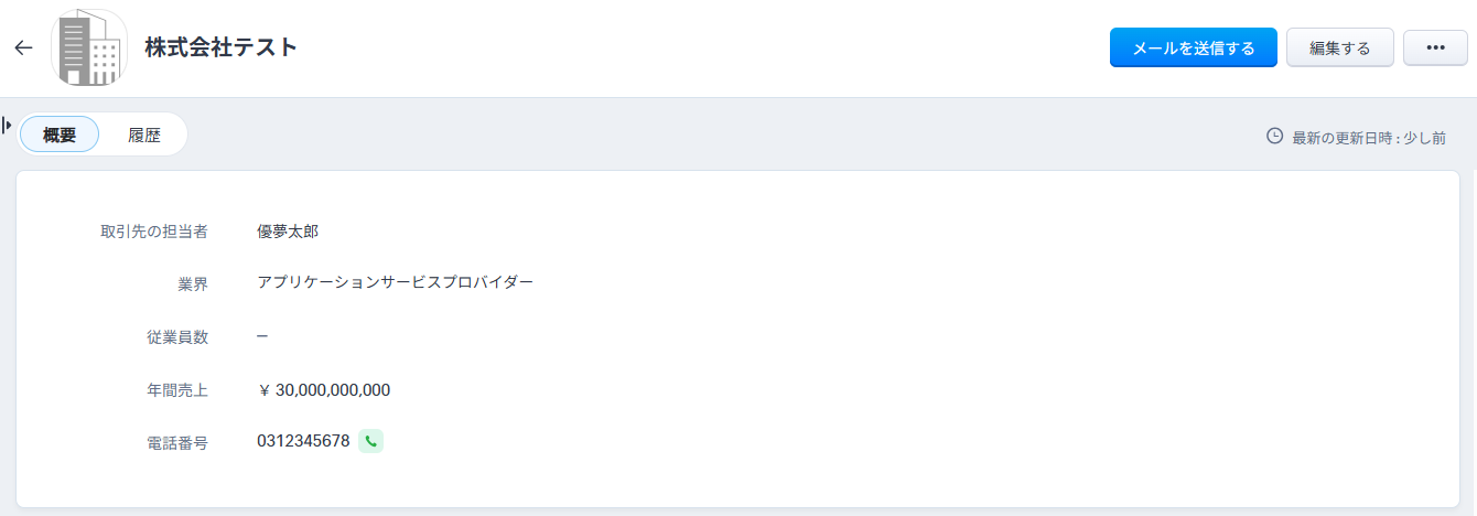 Zoho CRMにログインし、テスト用の新規取引先を作成しましょう。(架空の設定でOKです!)