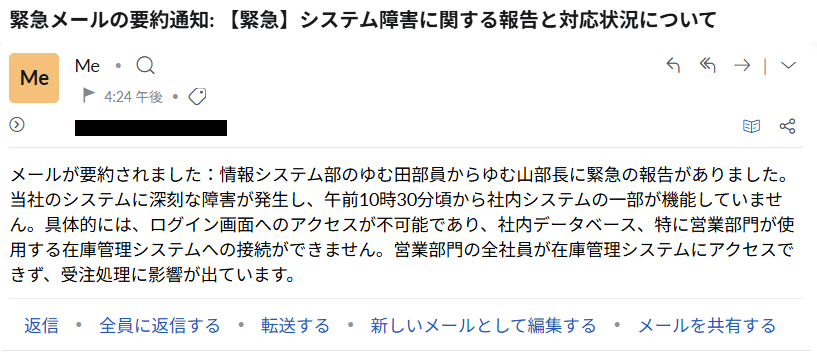 連携したZoho Mailアドレスから、ChatGPTによる要約結果が送信されました!
