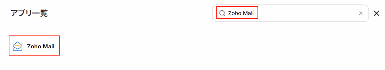 「+新規接続」ボタンをクリックすると、入力欄が表示されます。「Zoho Mail」と入力し、表示されたアプリをクリックしましょう。