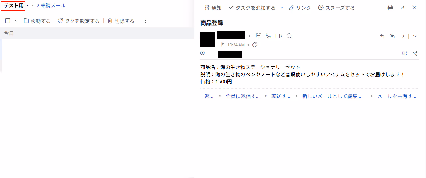 今回ご紹介するテンプレートはZoho Mailの特定のフォルダにメールが届いたら起動するフローです。そのため、実際にテストを行うにはZoho Mailへメールを送る必要があります。